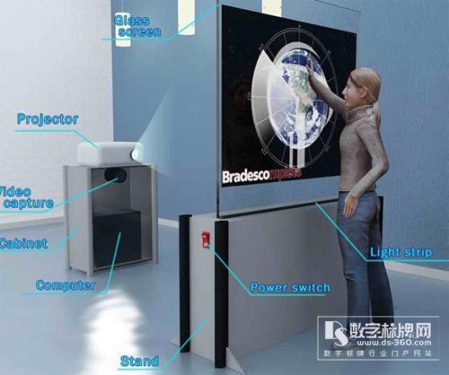 2、站在玻璃墻外,可以觸摸玻璃墻上的圖像,查詢商品信息,了解企業品牌、企業文化,它是一個室外的大尺寸觸摸屏;